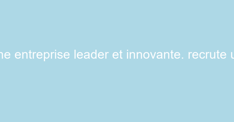 Un r“le cl‚ dans une entreprise leader et innovante.