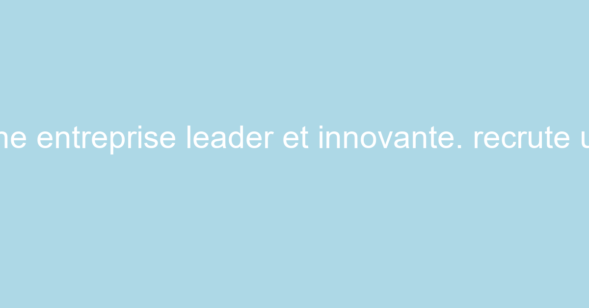 - Un r“le cl‚ dans une entreprise leader et innovante.